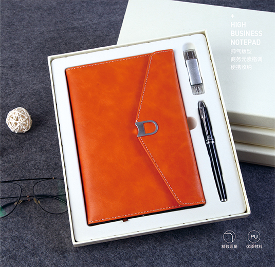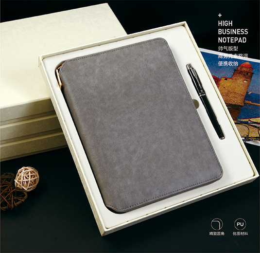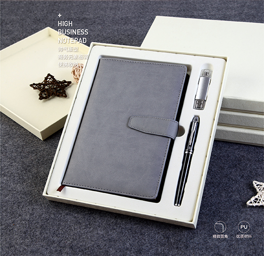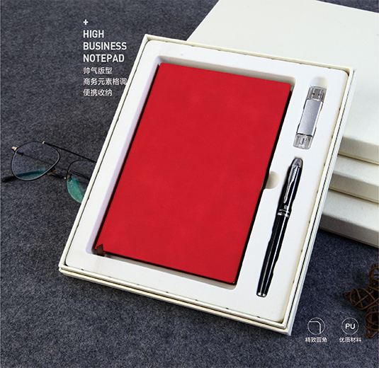精品优质PU料 / 高品质环保纸 / 精细油边 / 罗马纹书签带 / 金属笔 / 16GU盘